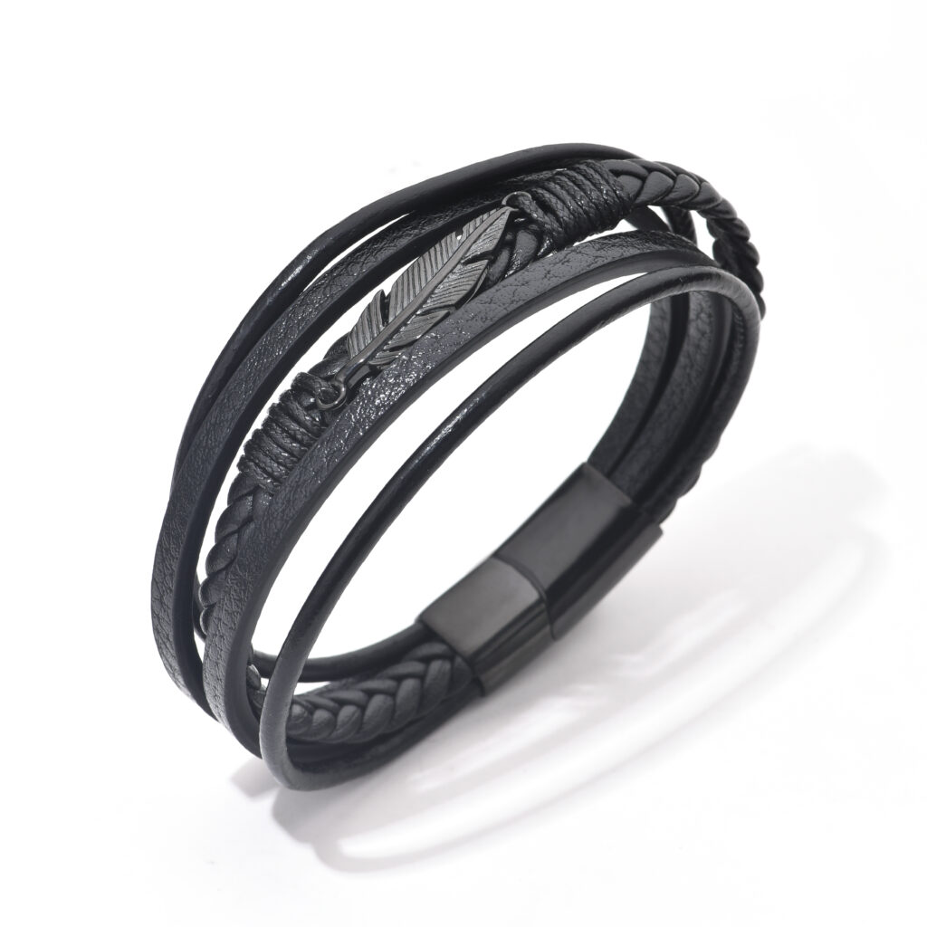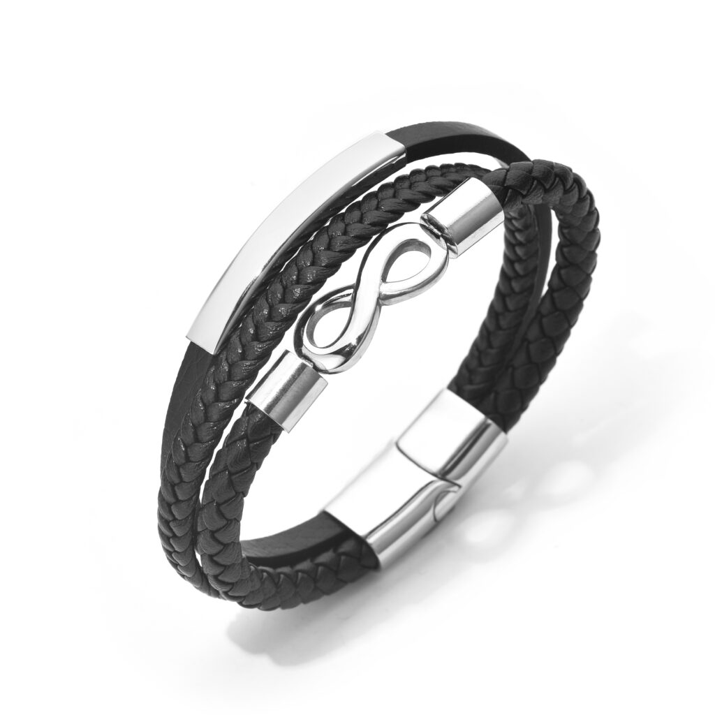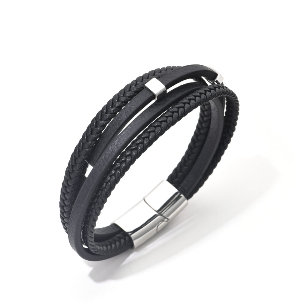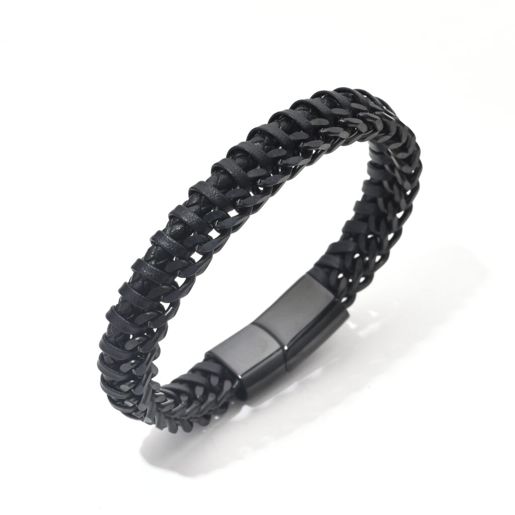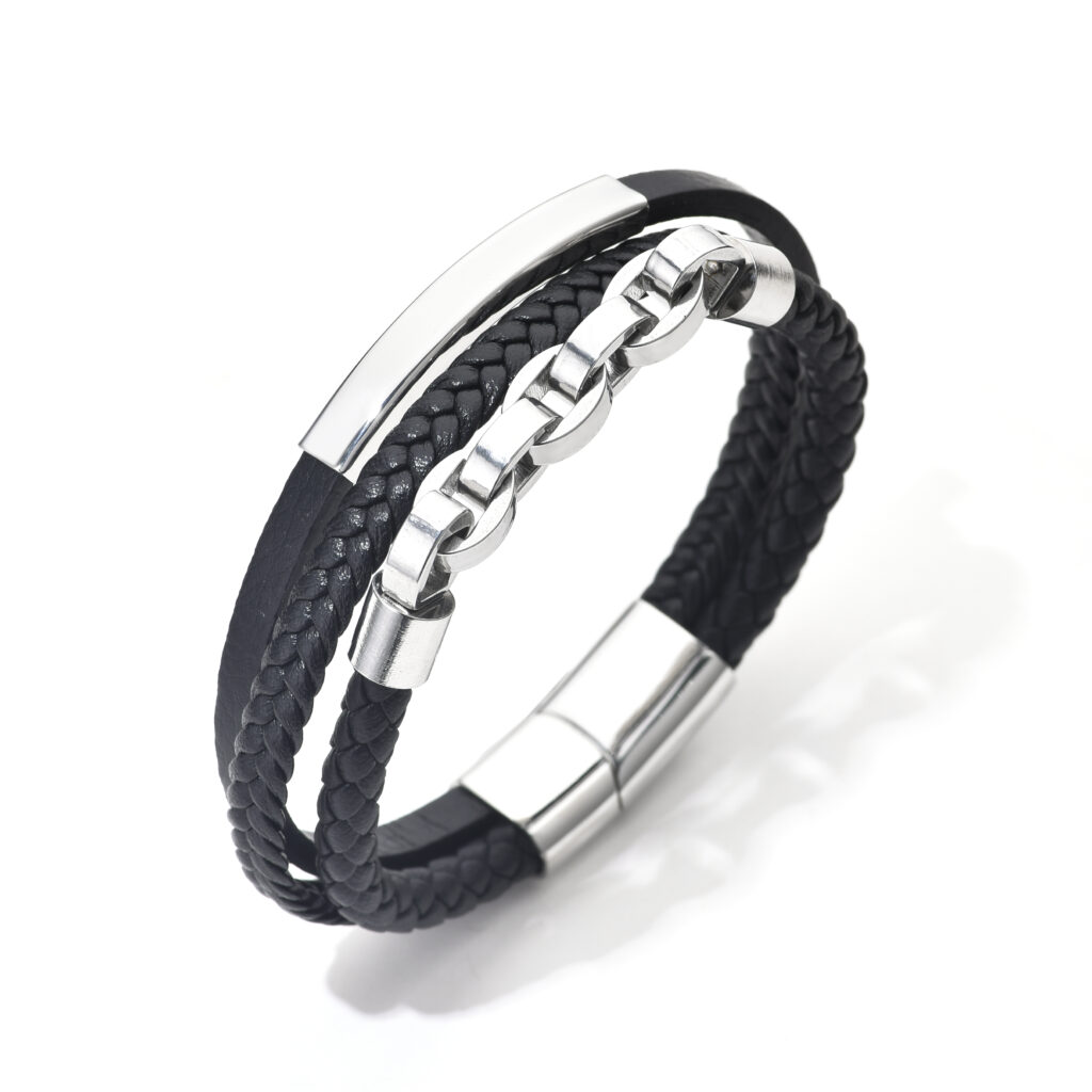 Bratara barbati din piele naturala cu otel inoxidabil.Impletiturile din piele naturala sunt usoare si confortabile,inchizatoare magnetica cu logo-ul nostru.