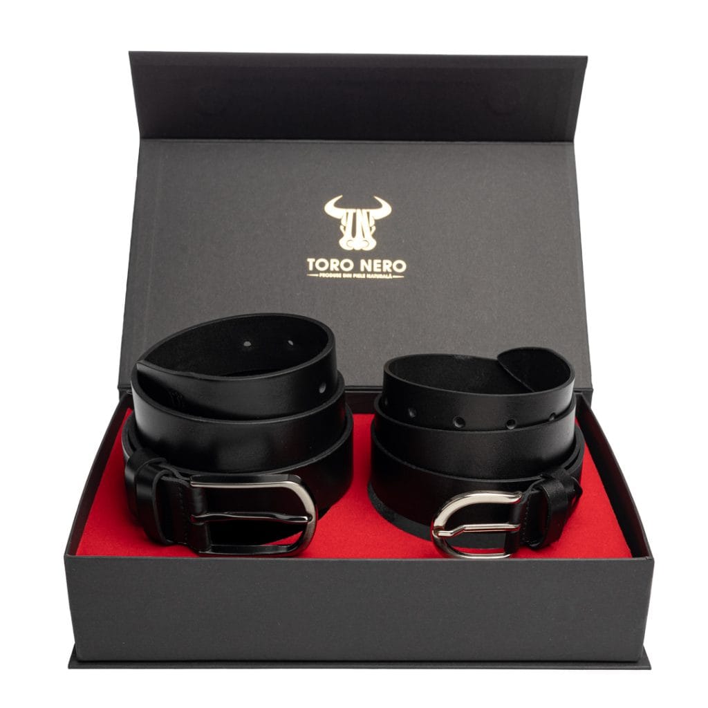 Set cadou din piele naturala curea femei+curea barbati negru Middle-Basic