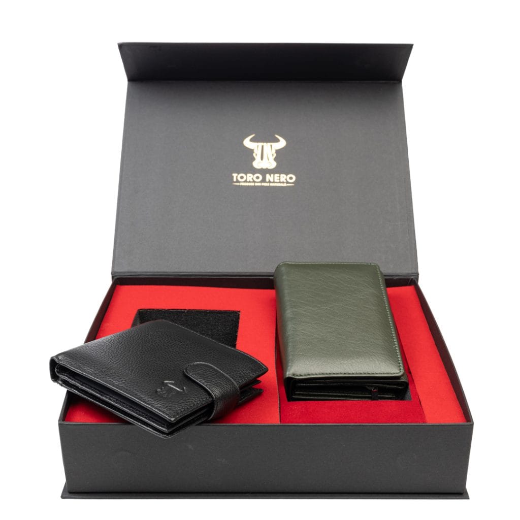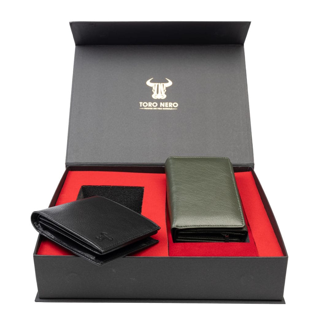 Set cadou portofel femei+ portofel barbati din piele naturala negru-verde Little-Vita Opzioni