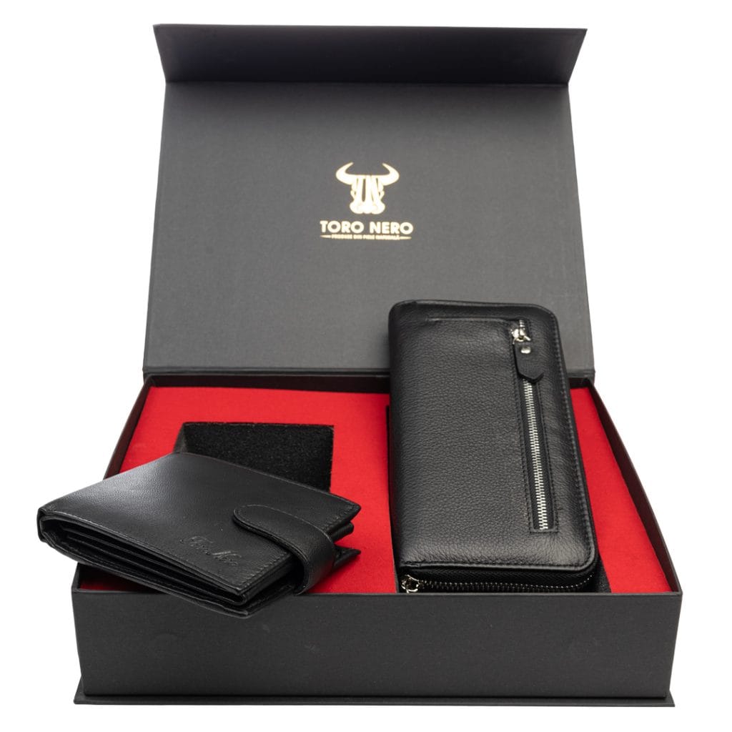 Set cadou portofel femei+ portofel barbati din piele naturala negru Arya-Vita Opzioni