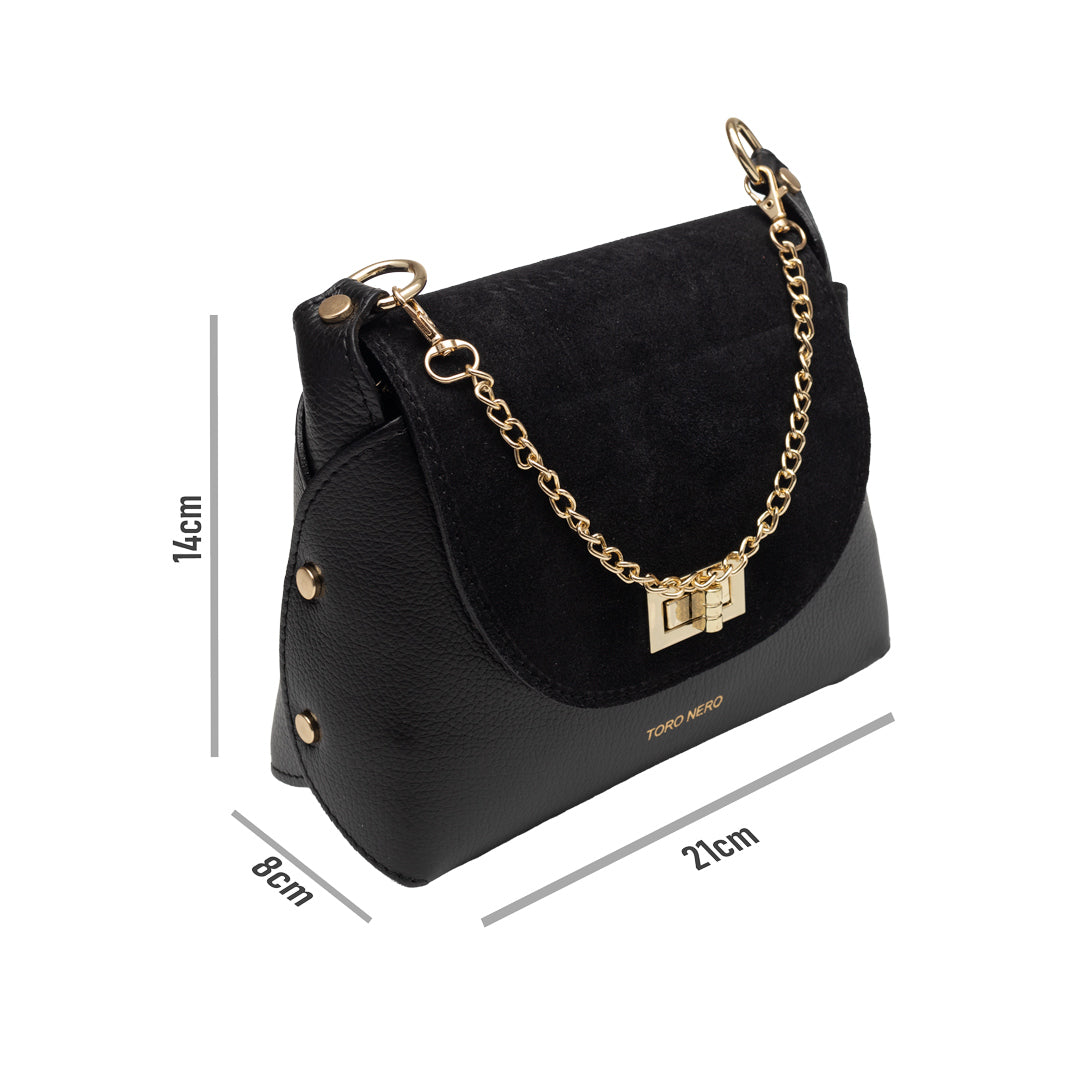This women's bag combines elegance with functionality, being made of high-quality natural suede leather. The deep black color makes it versatile and easy to match with any outfit, from casual to the most formal. The Raisa design offers generous space for daily personal effects, with well-organized compartments for optimal accessibility. Natural leather improves over time, developing a unique patina that reflects the wearer's personal style. The ergonomic handles and solid construction guarantee long-term comfort and durability, turning this bag into an indispensable accessory for the modern woman.