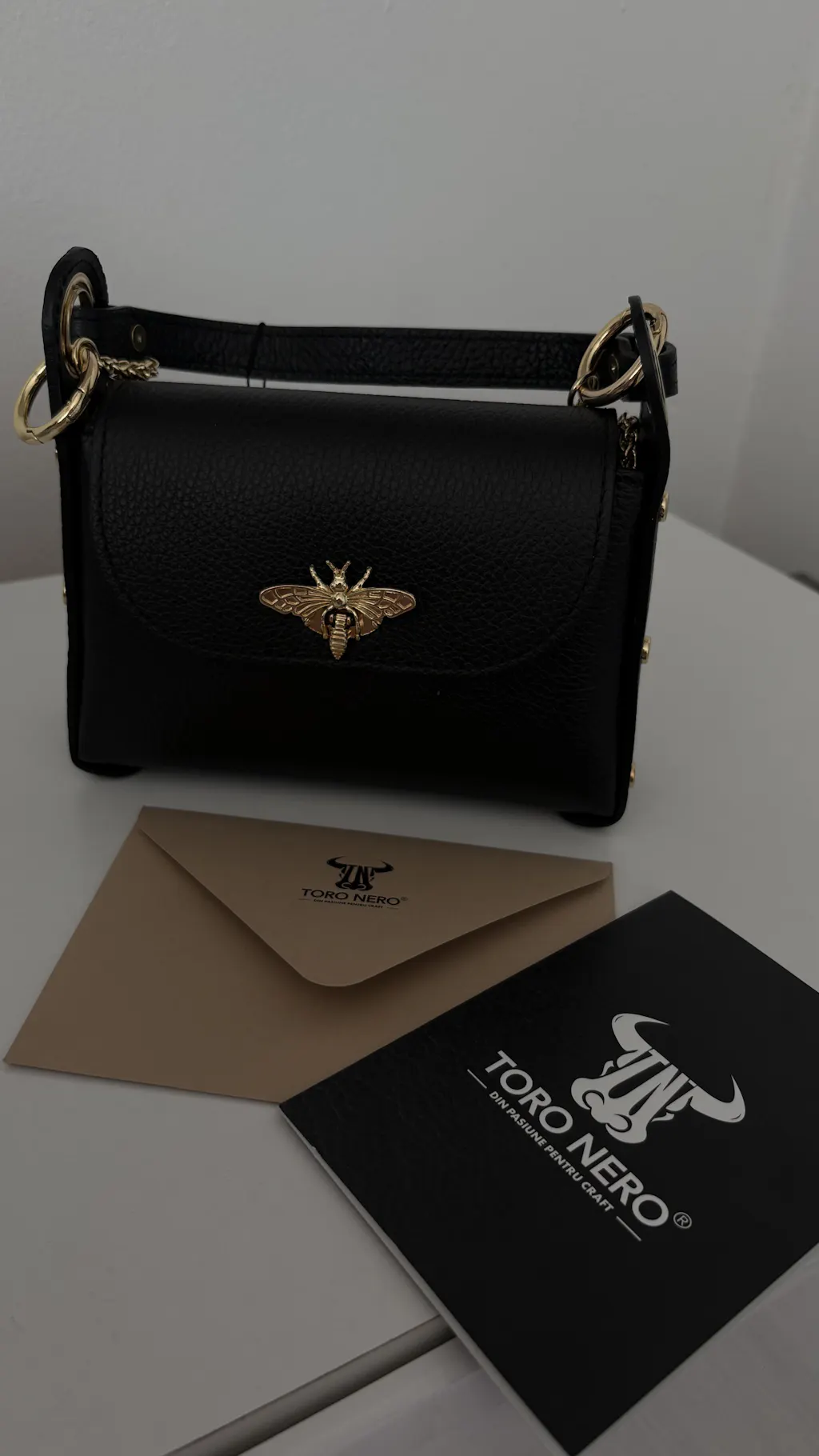 The Iris women's bag by Toro Nero, in black, is made of high-quality genuine leather. Its elegant and practical design includes a spacious main compartment, a zipper closure for security, and a removable 115 cm shoulder strap. The compact dimensions (20 cm wide, 13 cm long, 6 cm thick) make it perfect for everyday use, providing enough space for essentials. This bag is ideal for modern women who appreciate elegance and functionality.