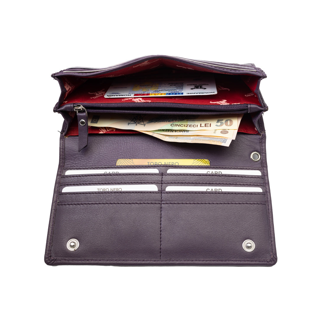 Portofel femei din piele naturala mov Chiara,protectie Rfid