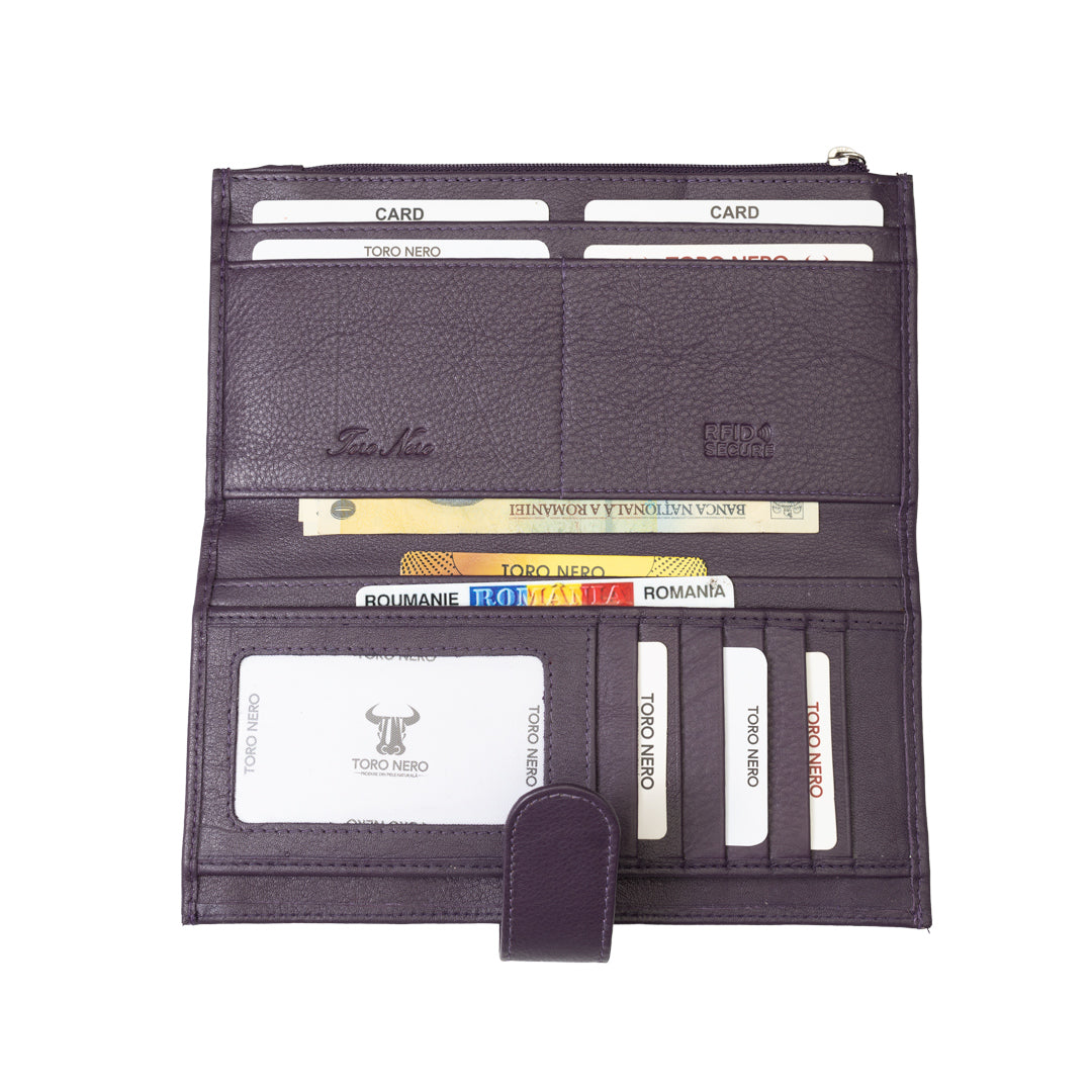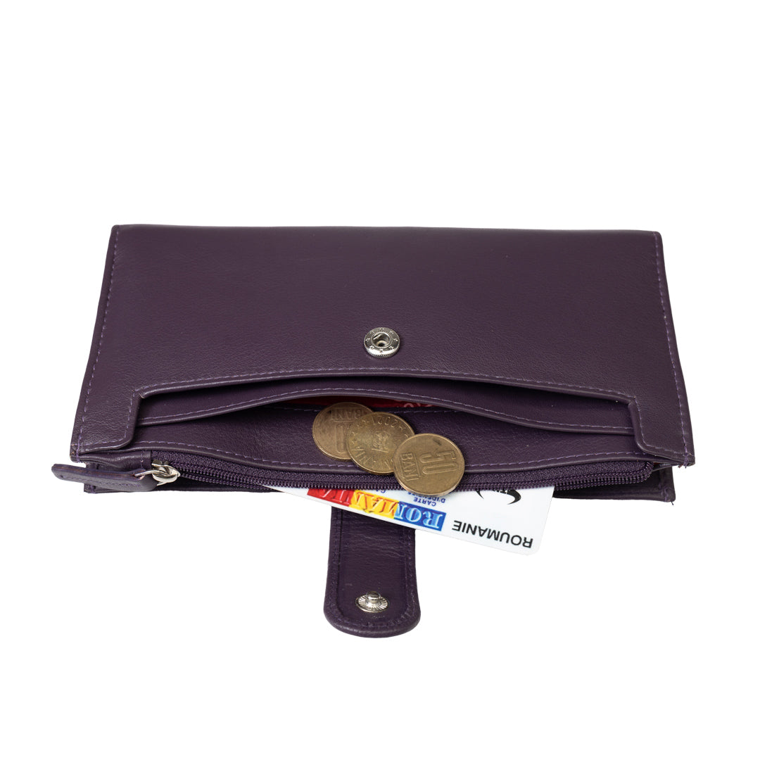 Portofel femei din piele naturala mov Cory,protectie Rfid