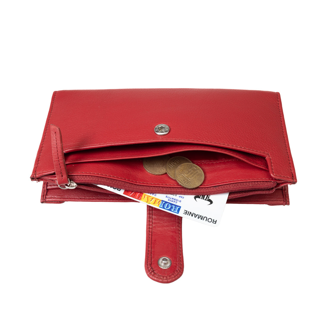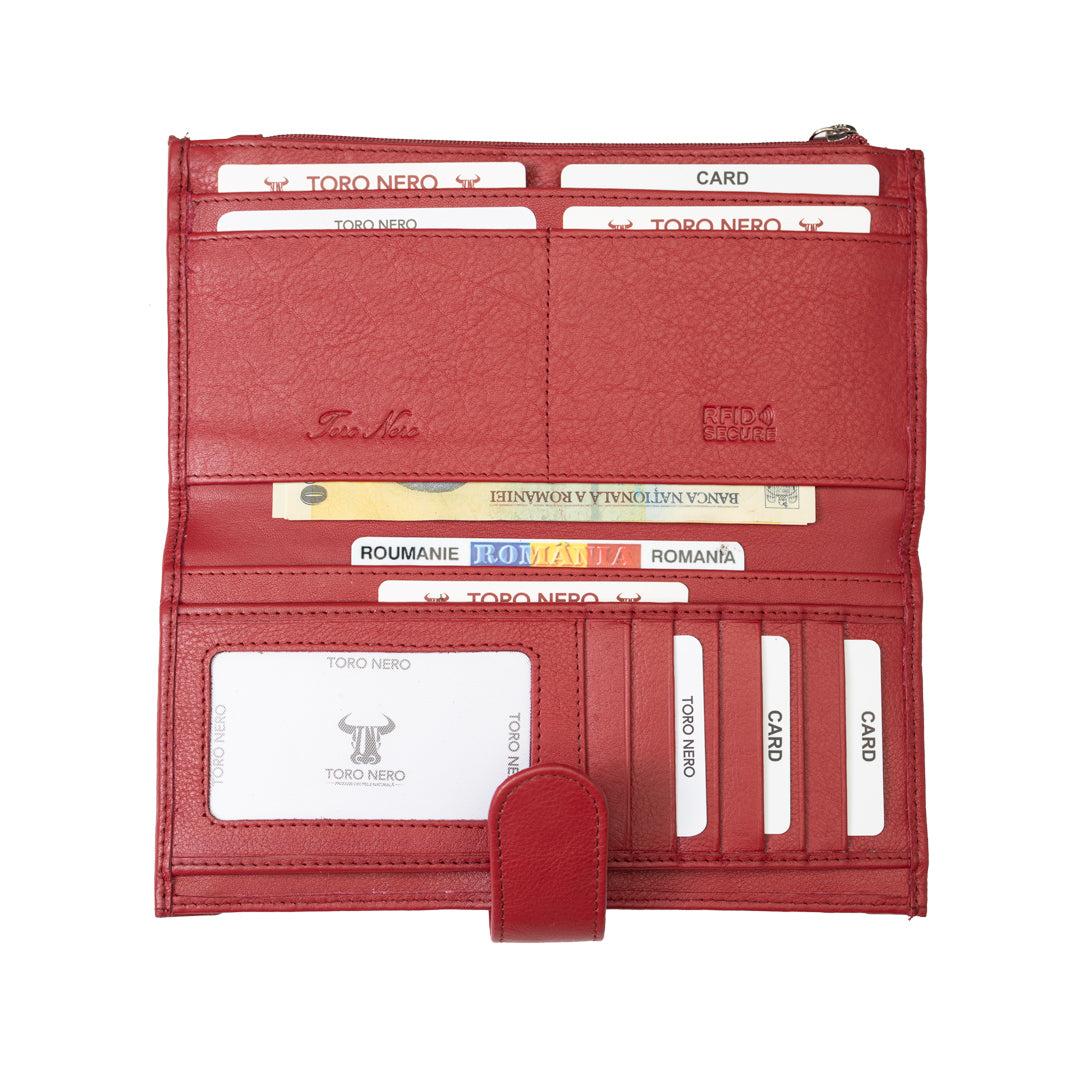 Portofel femei din piele naturala rosu Cory,protectie Rfid