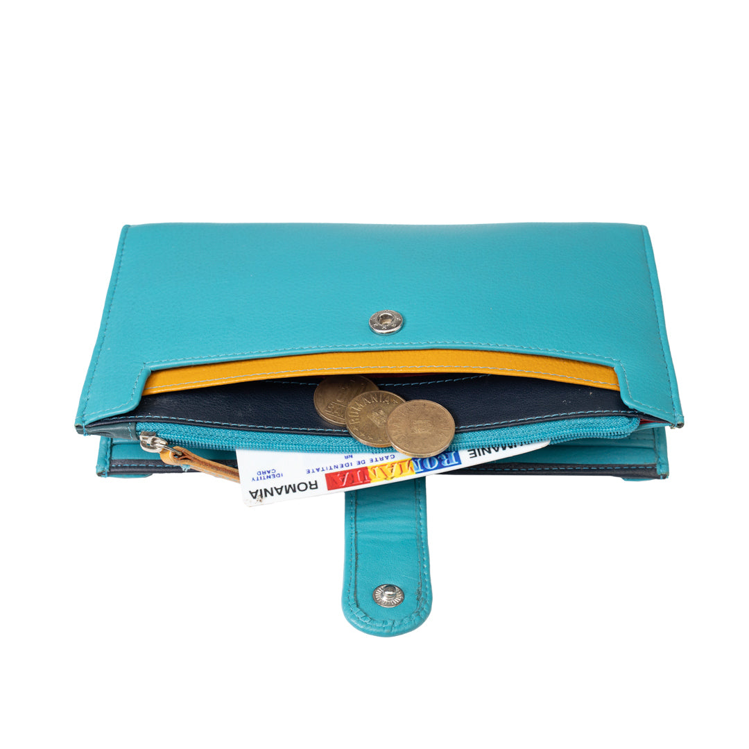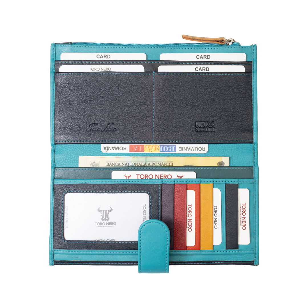 Portofel femei din piele naturala turcoaz Cory,protectie Rfid