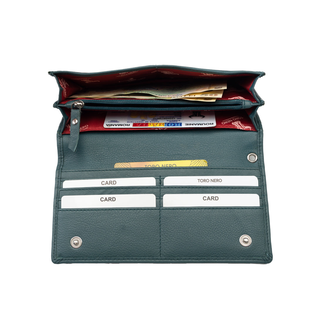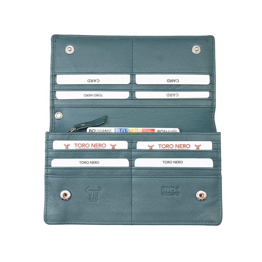 Portofel femei din piele naturala verde Chiara,protectie Rfid