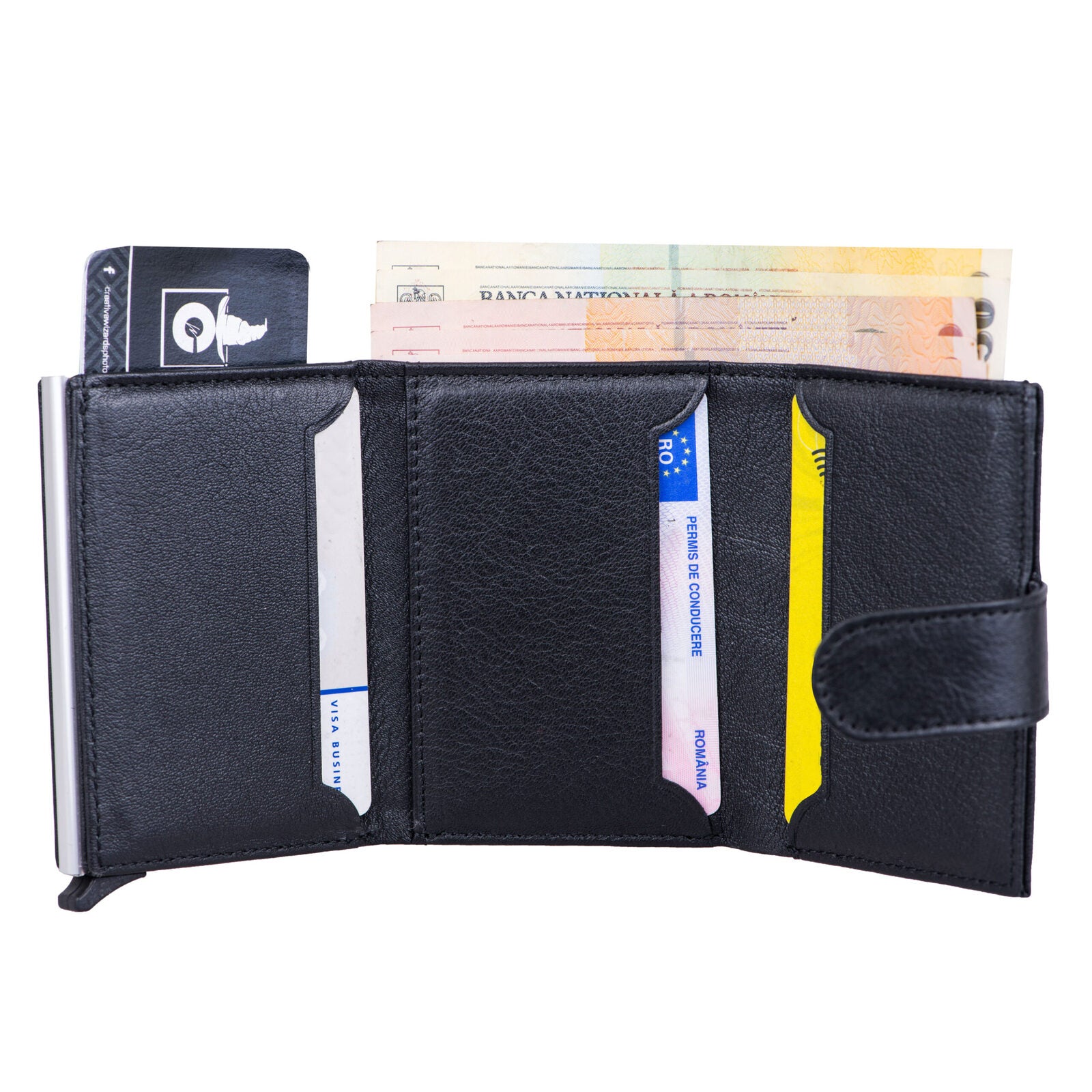 Port-card barbati din piele naturala negru Master Slide Pro,protectie RFID