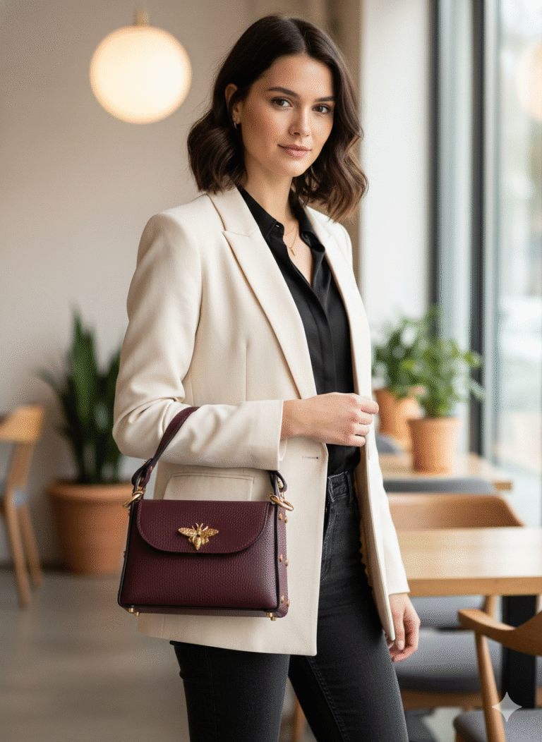Geanta de damă Iris de la Toro Nero, în nuanța bordo, este realizată din piele naturală de calitate superioară. Designul său elegant și practic include un compartiment principal spațios, o închidere cu fermoar pentru siguranță, și o bretea de umăr detașabilă de 115 cm. Dimensiunile compacte (20 cm lățime, 13 cm lungime, 6 cm grosime) o fac perfectă pentru utilizarea zilnică, oferind suficient spațiu pentru esențiale. Această geantă este ideală pentru femeile moderne care apreciază eleganța și funcționalitatea.