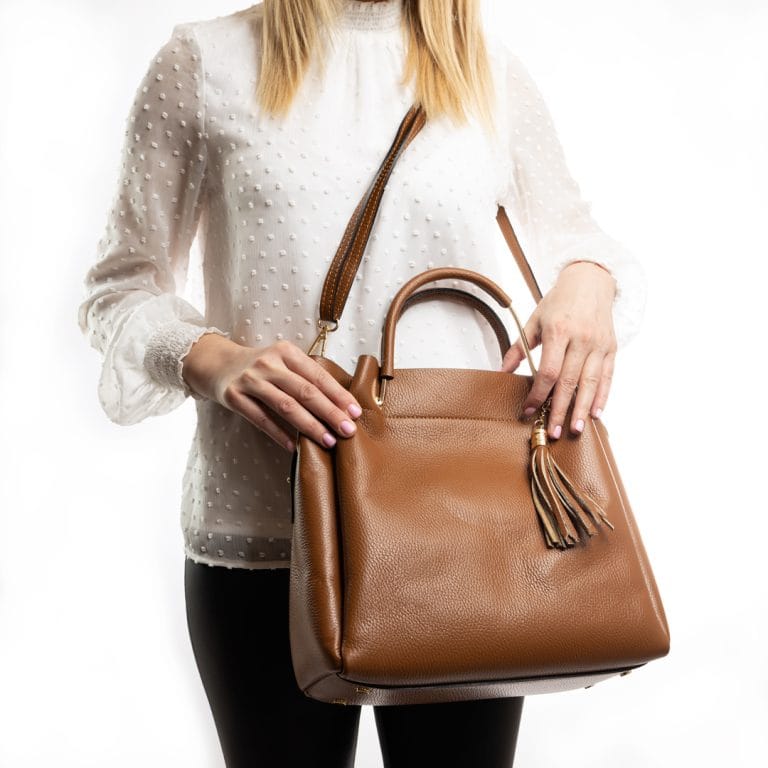 Geanta pentru damă „Ilinca” de la Toronero este un accesoriu elegant și rafinat, confecționat din piele naturală de înaltă calitate într-o nuanță pură de maro. Cu un design clasic și atemporal, această geantă este perfectă pentru a completa orice ținută cu eleganță și stil. Compartimentul principal generos vă permite să păstrați toate obiectele personale esențiale în ordine, iar buzunarele interioare suplimentare oferă spațiu pentru organizare suplimentară. Geanta vine cu o curea de umăr reglabilă și detașabilă, permițându-vă să o purtați în diferite moduri, în funcție de preferințe și nevoi. Detaliile de calitate superioară, precum și finisajele impecabile, completează aspectul sofisticat al gentii, adăugând un plus de eleganță și rafinament. Geanta „Ilinca” în maro este un accesoriu clasic și versatil, perfect pentru femeile cu rafinament și gust excepțional. Indiferent de ocazie, această geantă va adăuga un farmec aparte ținutei dumneavoastră și va evidenția stilul dumneavoastră sofisticat.