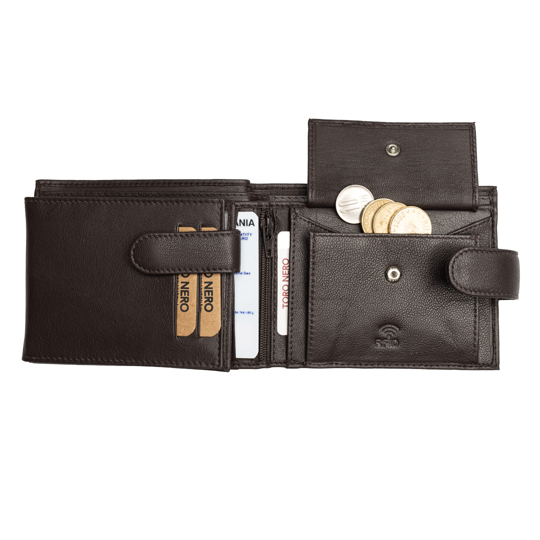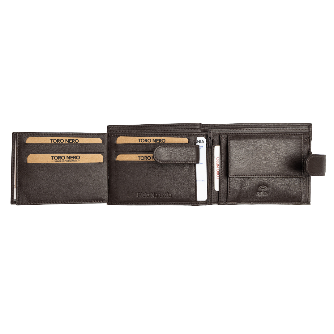 Cu acest portofel TORO NERO din piele naturală nu trebuie să îți faci griji că vei rămâne fără spațiu pentru cele mai importante lucruri din viața ta. Portofelele noastre sunt lucrate manual din piele de calitate superioară.
