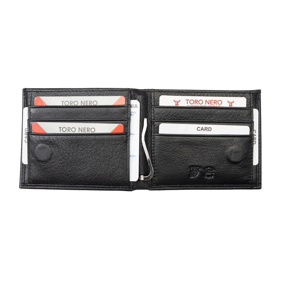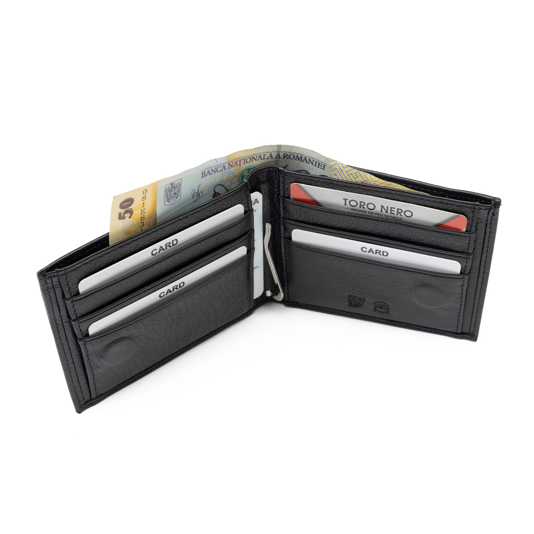 Cu acest portofel TORO NERO din piele naturală nu trebuie să îți faci griji că vei rămâne fără spațiu pentru cele mai importante lucruri din viața ta. Portofelul prezintă un design elegant și rafinat, cu linii curate și detalii atent finisate. Culoarea neagra adaugă un aspect versatil si frumos lucrat si este potrivit pentru diferite stiluri vestimentare. Portofelul este conceput pentru a vă ajuta să vă păstrați cardurile, bancnotele și alte documente în ordine. Compartimentele multiple și buzunarele vă permit să organizați eficient elementele esențiale.Acest fapt se datorează celor 6 compartimente generoase ale modelului Doris.Astfel, vei putea să păstrezi în portofel lucrurile care contează pentru tine și stilul tău de viață, precum: bancnote, buletin, carduri bancare sau de fidelitate.