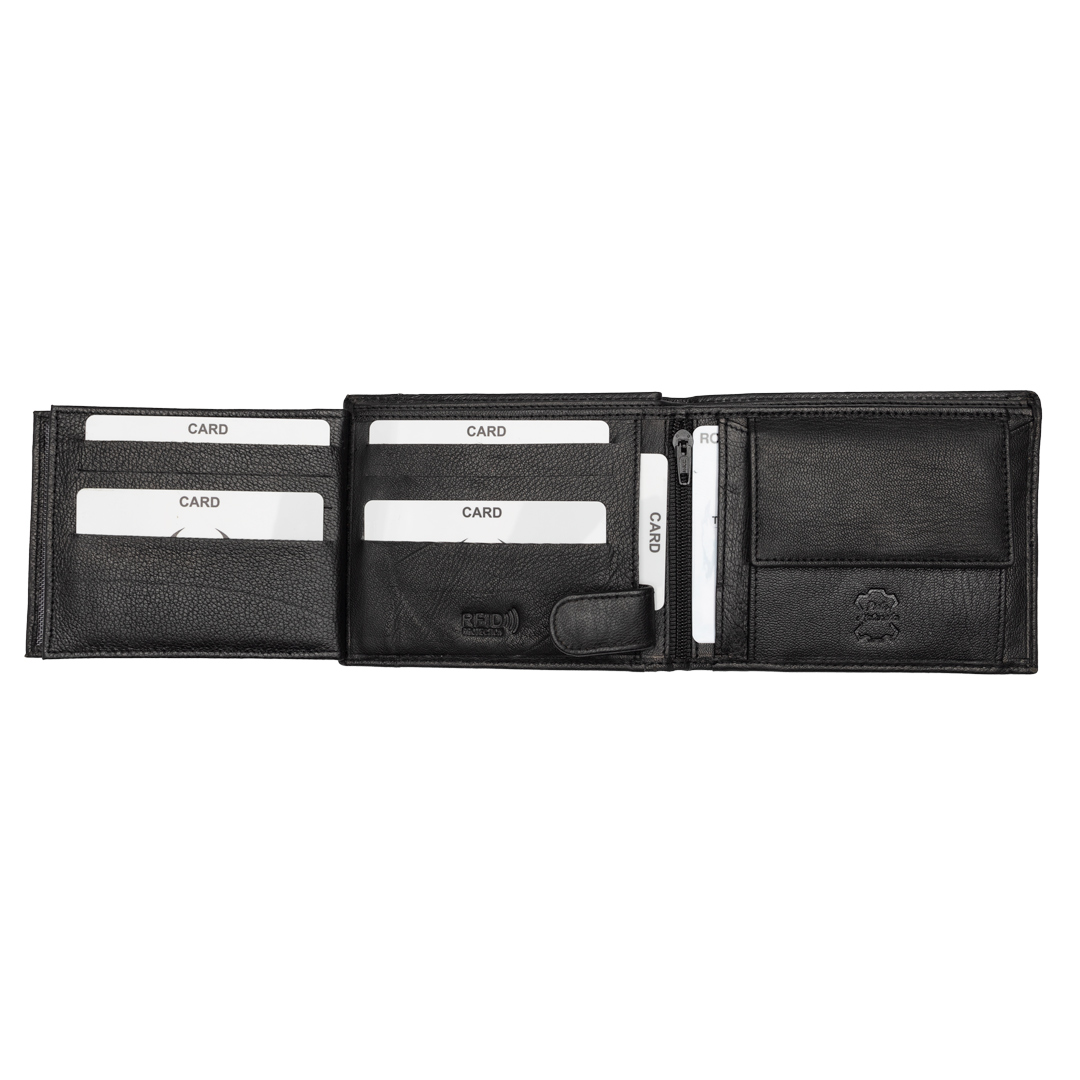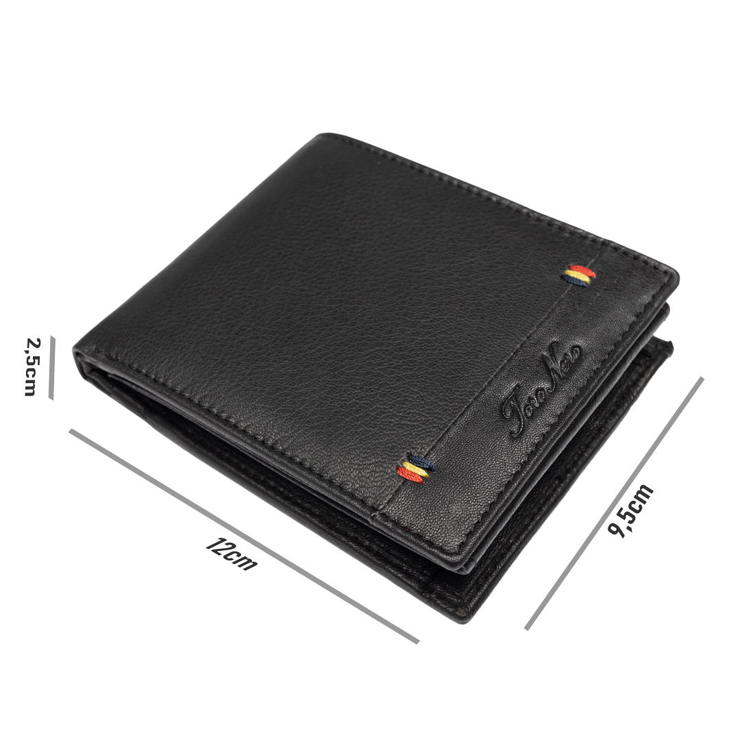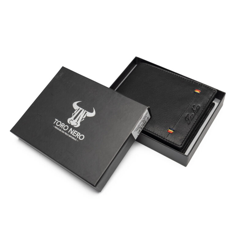 Portofelul pentru bărbați Tricolor, este un accesoriu rafinat și practic, ideal pentru păstrarea banilor, cardurilor și documentelor într-un mod organizat și sigur. Acesta este confecționat din piele naturală de culoare neagră, sugerând un aspect elegant și clasic, potrivit pentru diverse ocazii. Confecționat din piele naturală autentică, portofelul „Tricolor” nu doar că are un aspect distins, ci și promite să fie durabil și rezistent în timp. Pielea naturală poate dezvolta o patină și un aspect mai personalizat odată cu utilizarea continuă. Portofelul este proiectat cu grijă pentru a-ți oferi suficiente spații pentru carduri, bani și alte obiecte. Dispune de compartimente multiple pentru carduri, buzunare pentru bancnote și chiar un buzunar cu fermoar pentru monede. Acest design inteligent te ajută să păstrezi totul în ordine și ușor de găsit.Culoarea neagră este una dintre cele mai clasice și versatile alegeri, fiind potrivită pentru orice situație, de la întâlniri formale până la evenimente informale. Portofelul „Tricolor” este finisat cu atenție la detalii, cum ar fi cusături precise și elemente metalice de calitate. Aceste detalii subliniază aspectul elegant și durabil al accesoriului.Portofelul are dimensiuni care se potrivesc cu ușurință în buzunarul de la pantaloni sau în interiorul unei jachete, fără a crea disconfort.