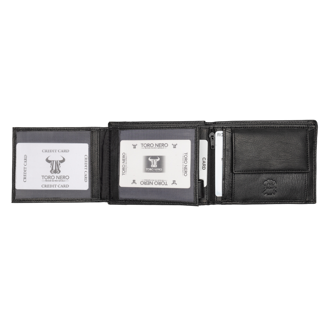 Cu acest portofel TORO NERO din piele naturală nu trebuie să îți faci griji că vei rămâne fără spațiu pentru cele mai importante lucruri din viața ta. Portofelele noastre sunt lucrate manual din piele de calitate superioară.