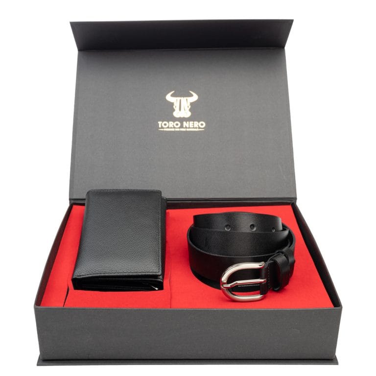 Setul cadou format din curea și portofel din piele naturală pentru femei de pe Toronero este o alegere elegantă și practică, perfectă pentru a adăuga un strop de rafinament oricărei garderobe. Fabricat din piele de înaltă calitate, setul se prezintă într-o nuanță neagră clasică, care asigură versatilitate și poate fi asortat cu ușurință la orice ținută.Portofelul este proiectat pentru a oferi atât stil, cât și funcționalitate, având multiple compartimente pentru carduri, note și monedă, menținând-le organizate și la îndemână. Cureaua are un design modern și elegant, ce poate fi ajustată pentru a se potrivi perfect, fiind ideală atât pentru ocazii speciale, cât și pentru iesiri in oras.Acest set cadou este o alegere inspirată pentru aniversări, zile de naștere sau orice altă ocazie specială, aducând un cadou de calitate superioară, ce va fi apreciat cu siguranță. Fiecare detaliu reflectă atenția la calitate și stil.